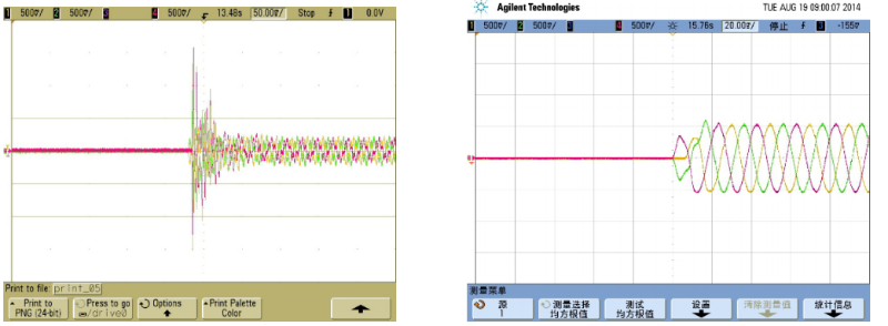 調諧/失諧電容器組隨機投入時的涌流                    無暫態投切技術可有效避免投入涌流