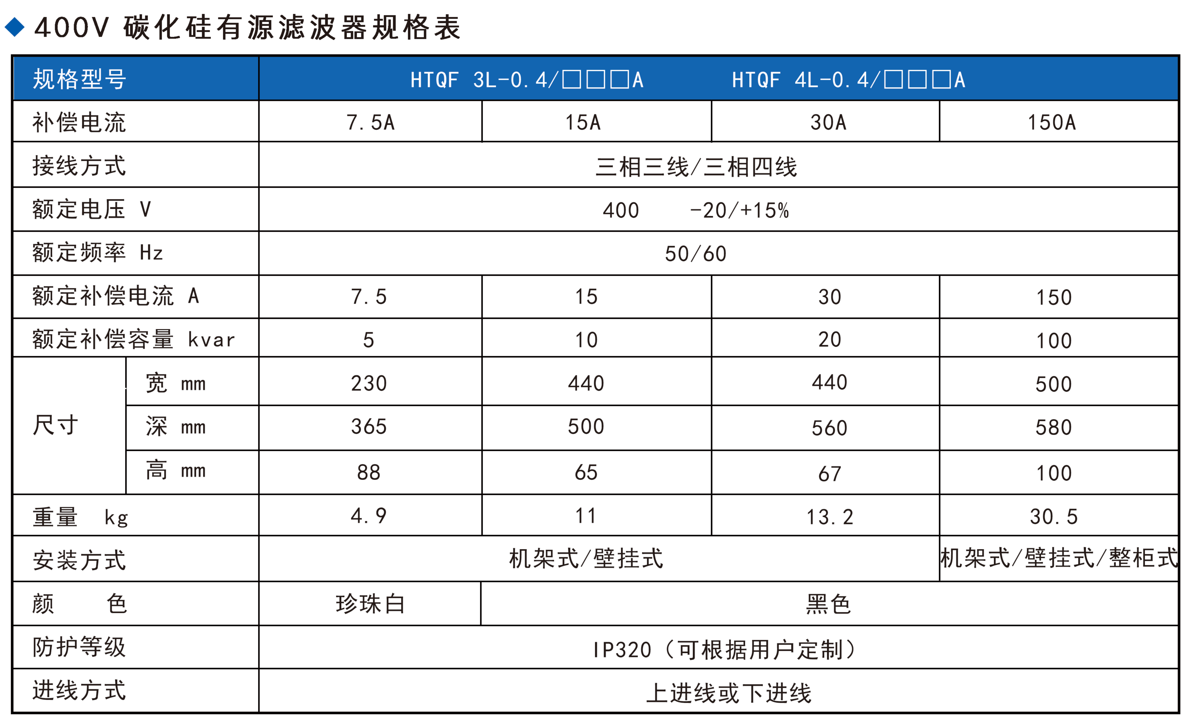 華天有源濾波器參數(shù)指標