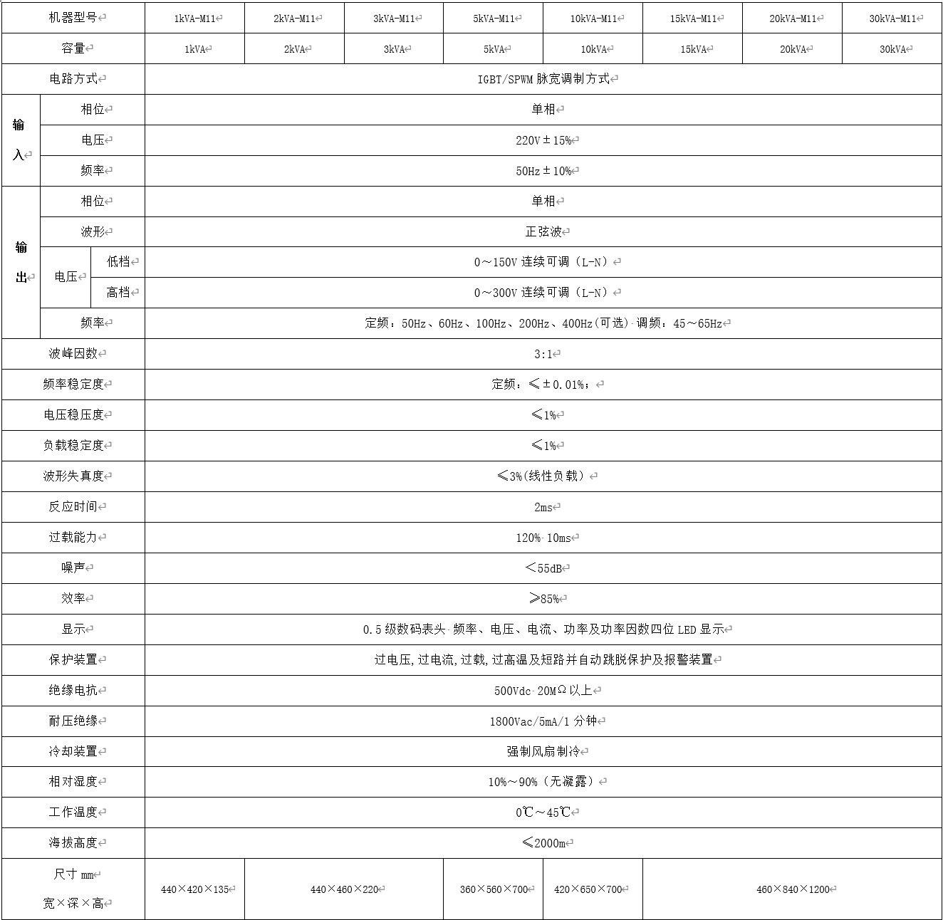 60Hz系列變頻電源單相輸入/單相輸出產品規格說明