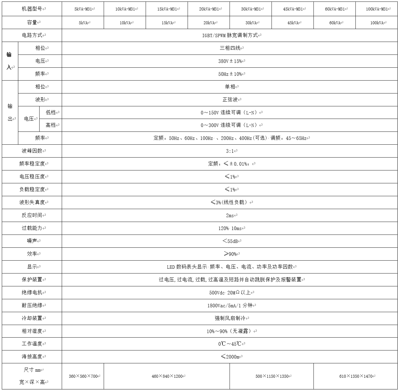 60Hz系列變頻電源單相輸入/三相輸出產品規格說明
